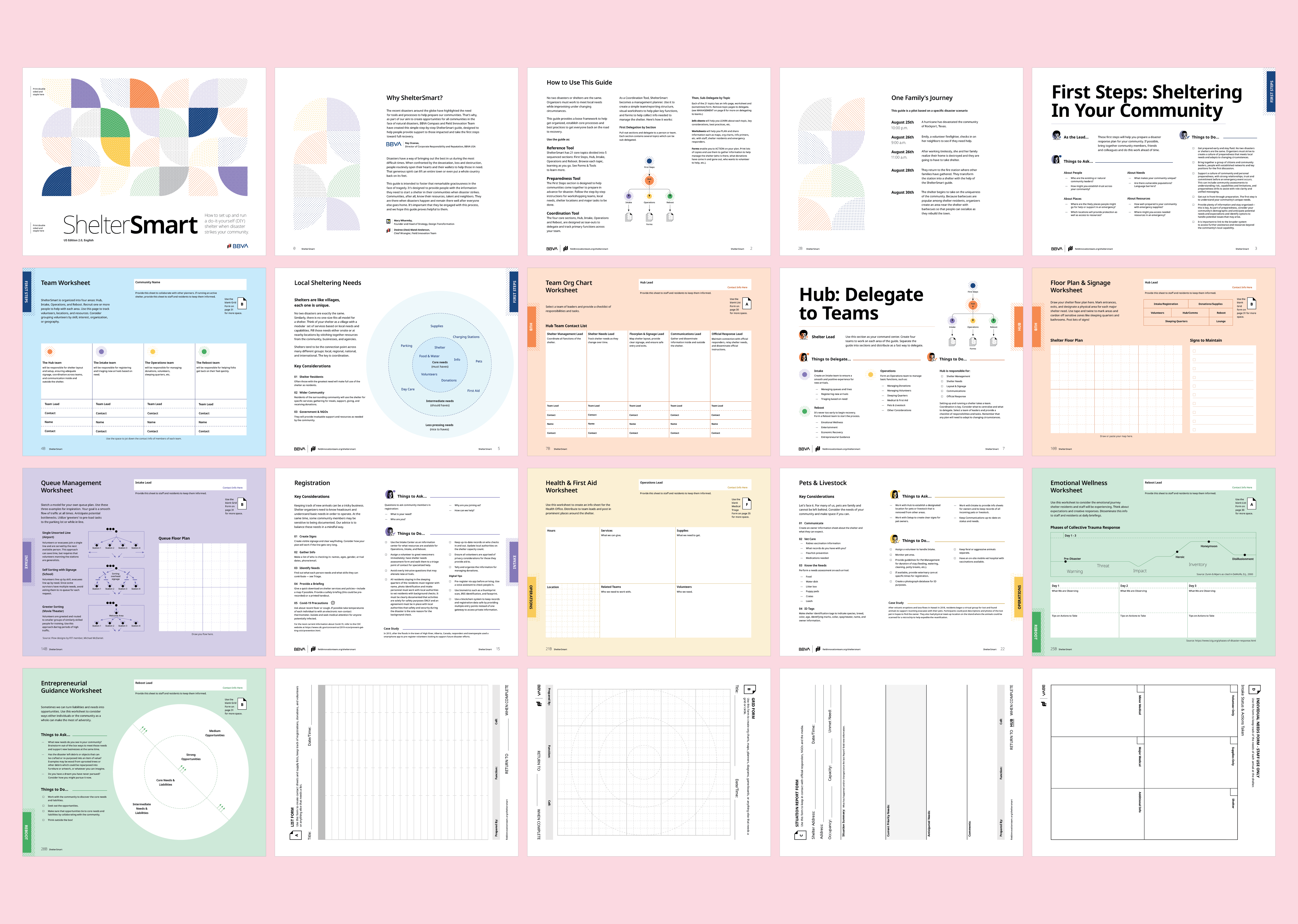 When natural disasters strike, communities need clear tools to organize and take action. I was brought in to consult on ShelterSmart, a guide designed for that purpose. 1) I provided a visual assessment of the current iteration, 2) offered constructive art direction, and 3) contributed to the design update of the guide. The pdf guide is a series of worksheets meant to be downloaded, printed out, and distributed. It’s a build and learn toolkit and aims to fill the gap between community needs and the government’s ability to provide aid immediately after a disaster.