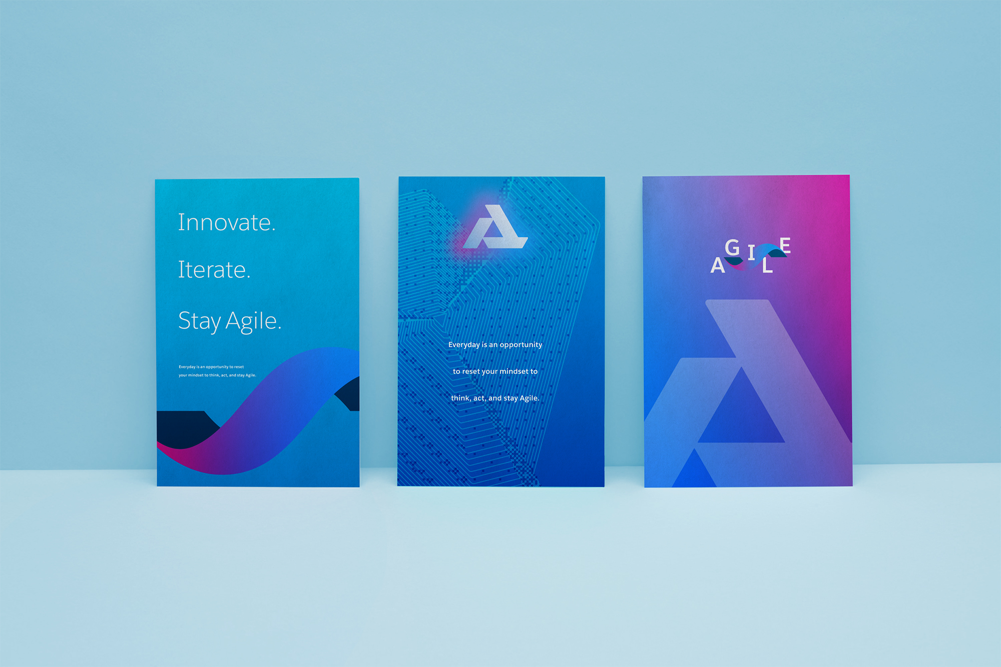 “Are we being Agile enough?” Having an Agile mindset gives you the freedom to fail, reset, and be better tomorrow than you were today. Agile minds just keep improving. This internal team rebrand promotes the Agile Mindset for one of Salesforce's engineering team.