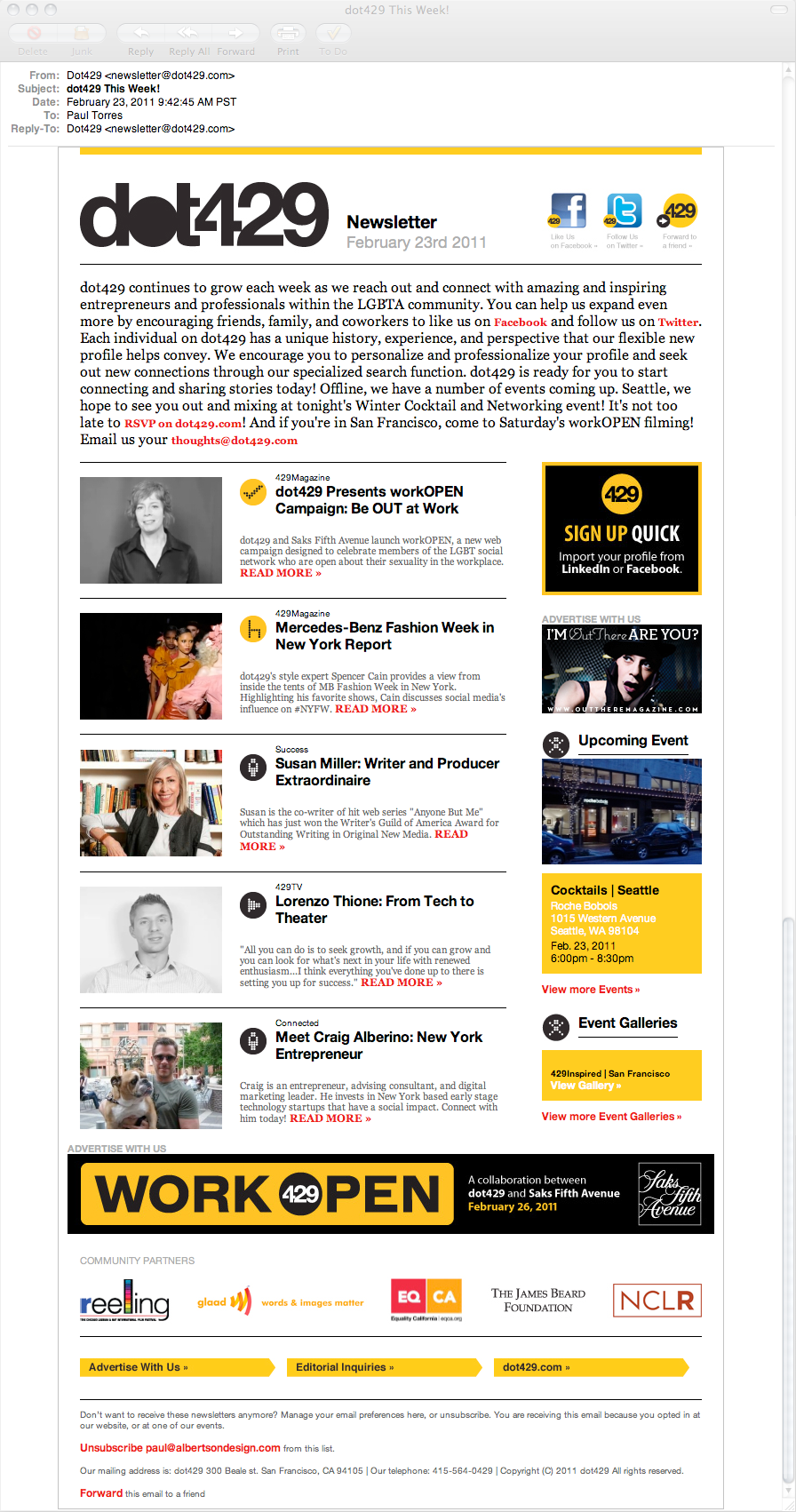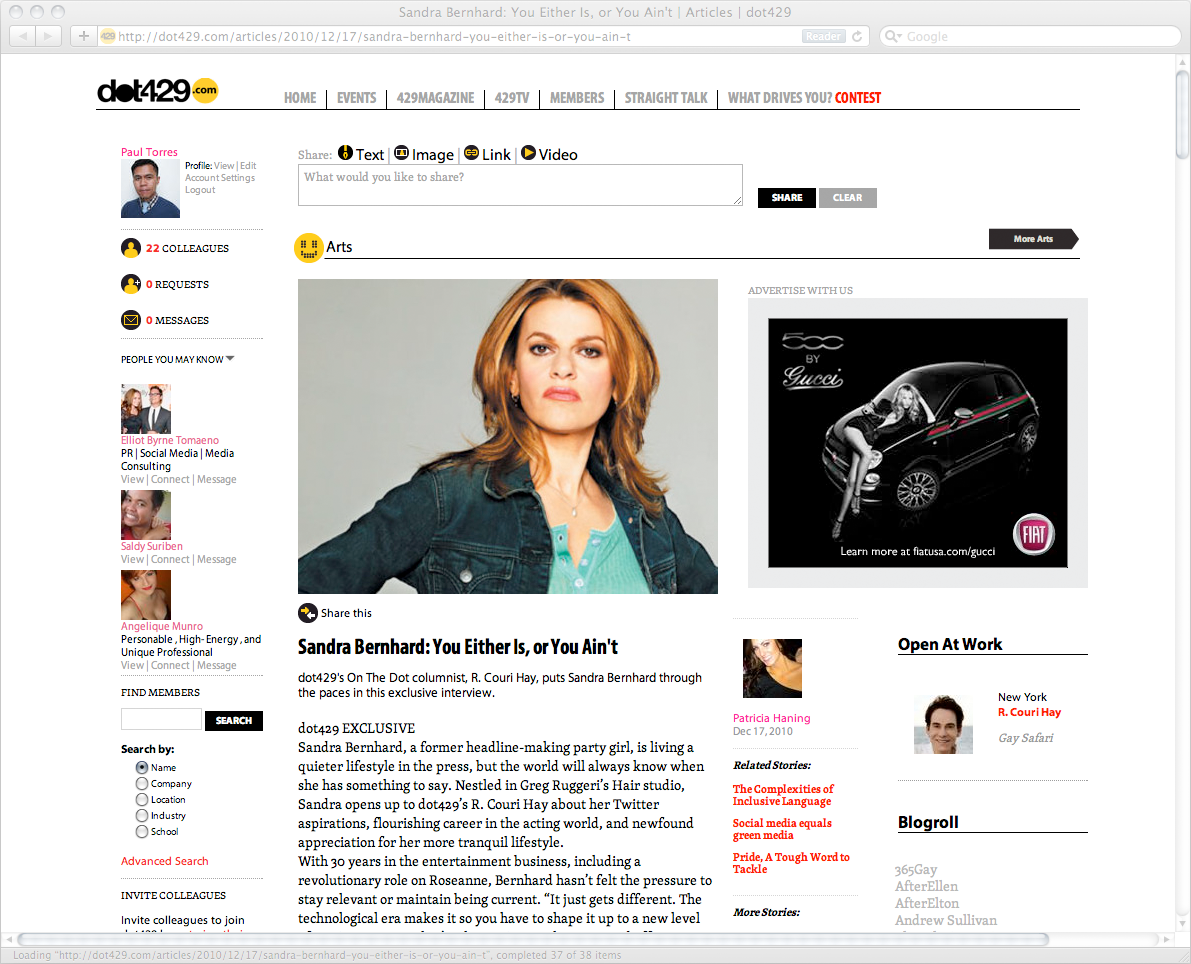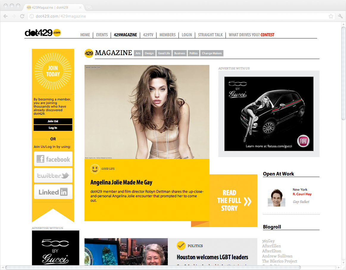 Designing more than a social network. At it's core, dot429 functioned as a social networking platform, live events hub, and digital editorial magazine. My role as the lead designer was to harmonize these three distinct services into a seamless brand experience that felt both experiential and vibrant. The result was a portal that didn't just serve as a platform but became a hub of empowerment, education, and connection for LGBTQ+ professionals.
