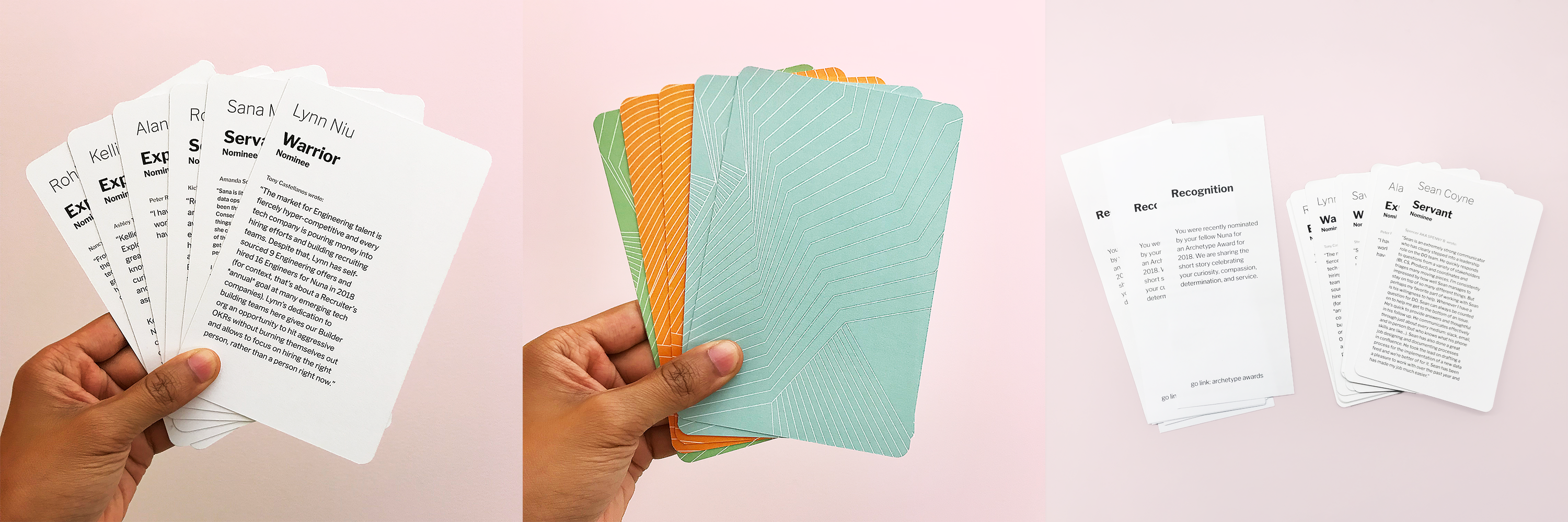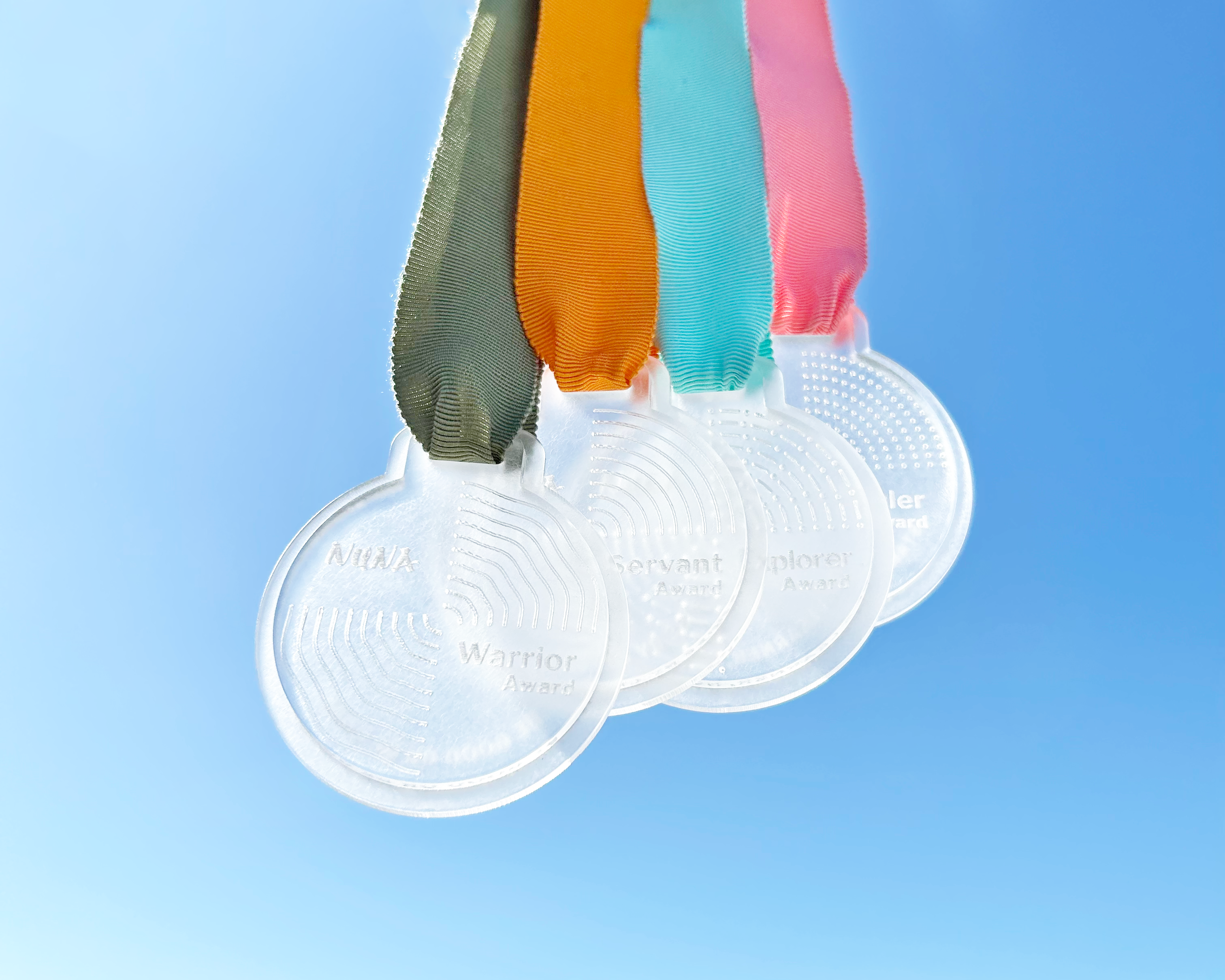I designed a set of four custom medals for our Nunas, each representing a core value they earned through their actions. Nominated and voted on by everyone, the awards recognized those who embodied the archetypes of the Explorer, the Servant, the Warrior, and the Healer. I chose to go with an award system that folks could keep replacing the previous trophy that rotated to the next winner.