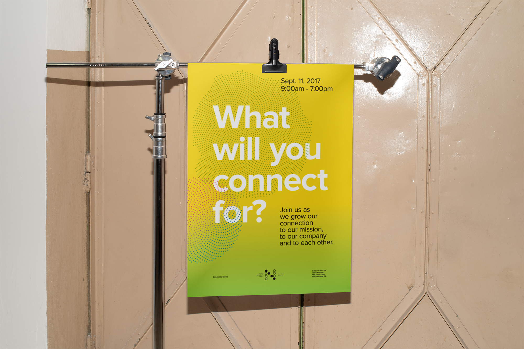 Poster design. I used the visual shorthand of “connecting the dots” as a starting point for developing the visuals for the Retreat.