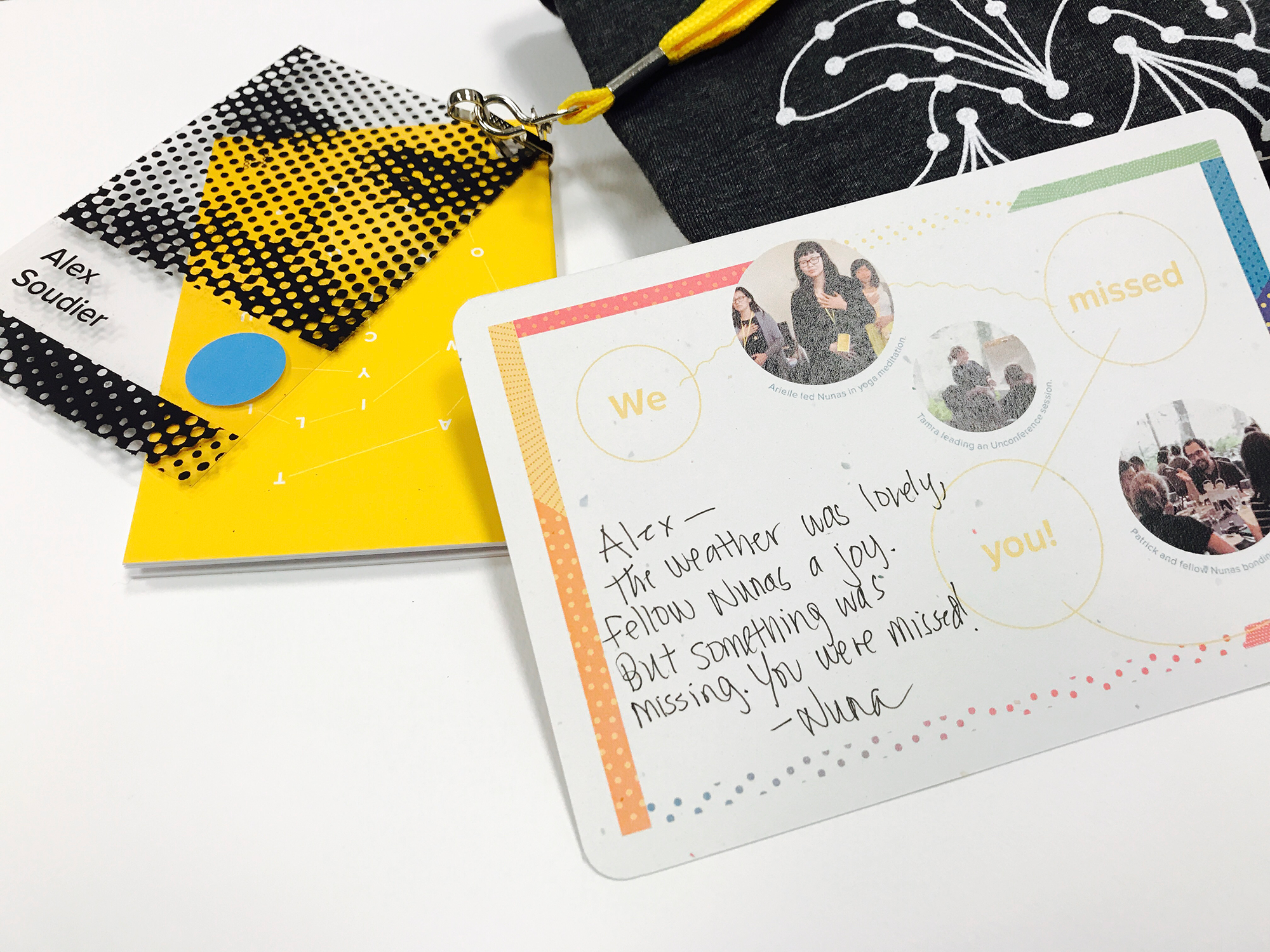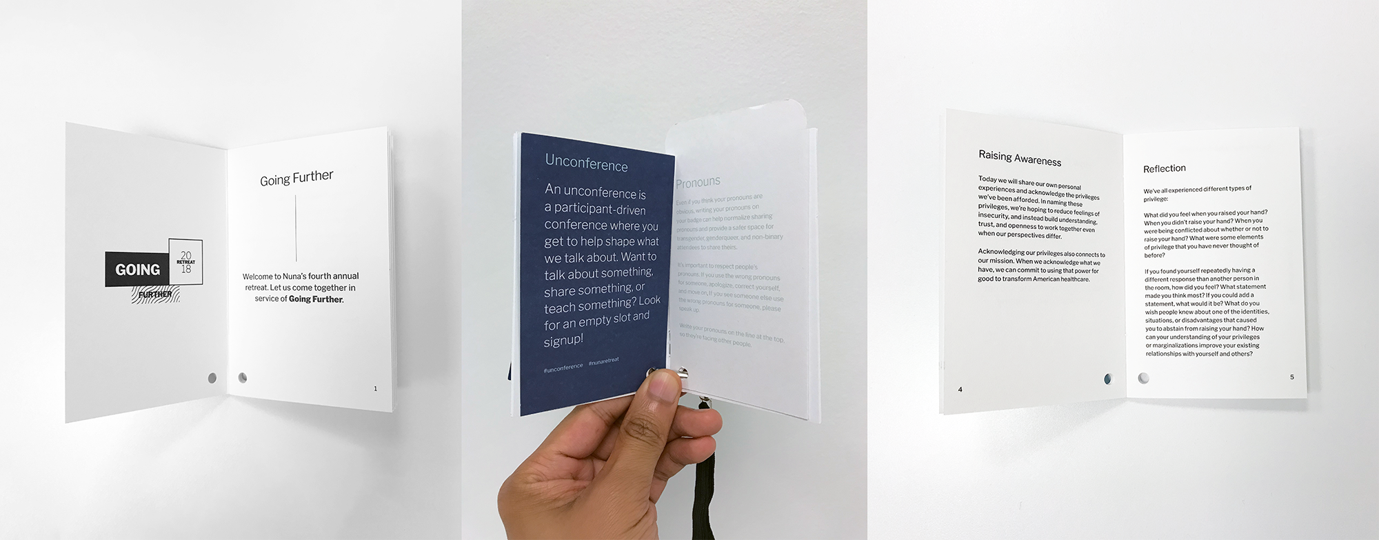 T-shirt and booklet lanyard. Program booklets were used for note taking and were tailored to each Nuna to showcase their individuality.