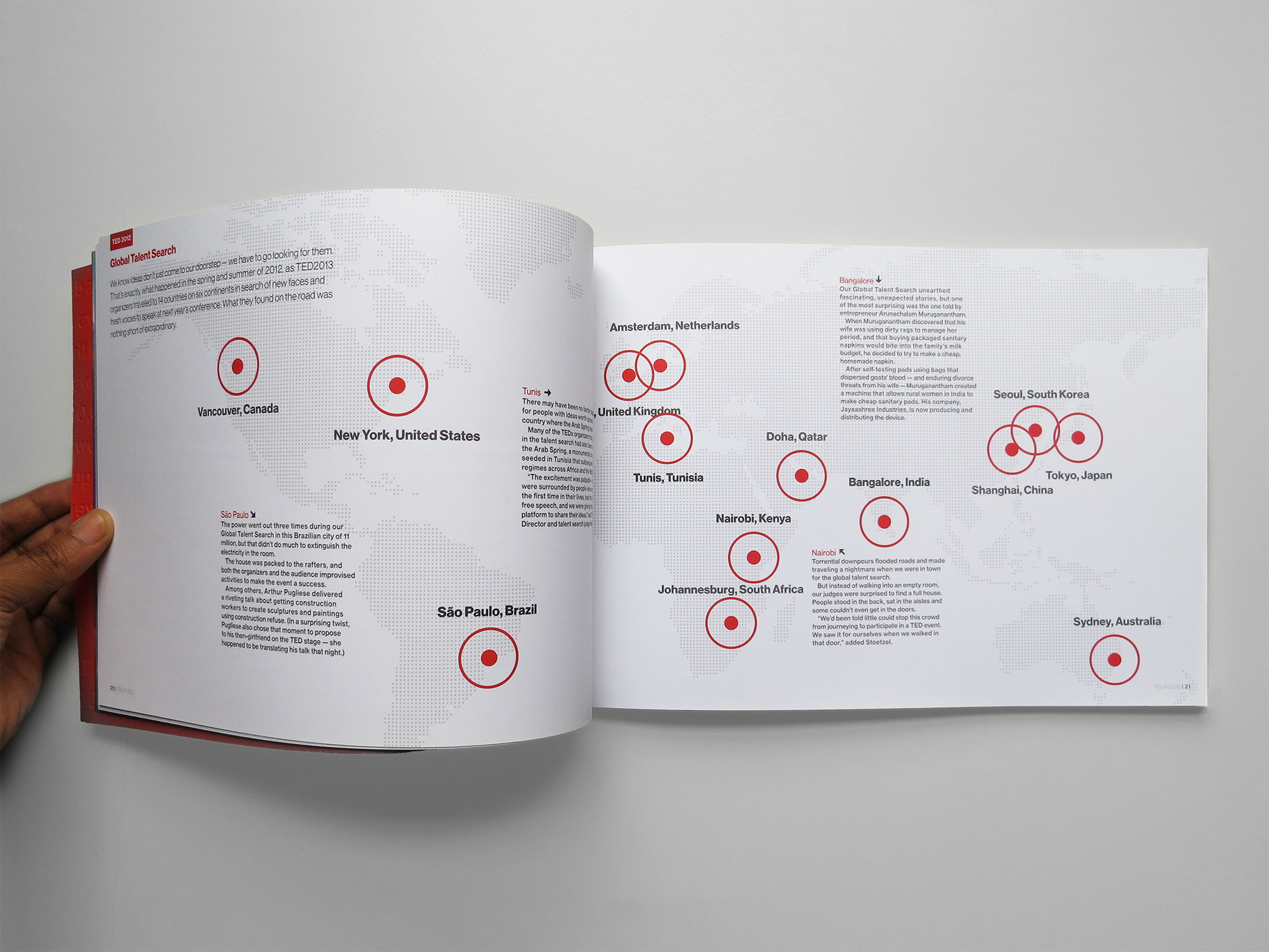 In a year of big leaps where, TED Talks passed a billion views, TEDx events took root around the world, new platforms like TED-Ed and TED Radio Hour took off, this beautifully designed print piece captured that momentum. It told the story of overlooked ideas finding a global stage and sparking real change.